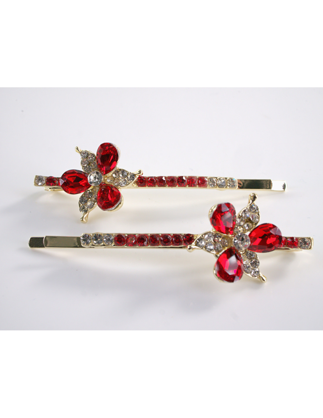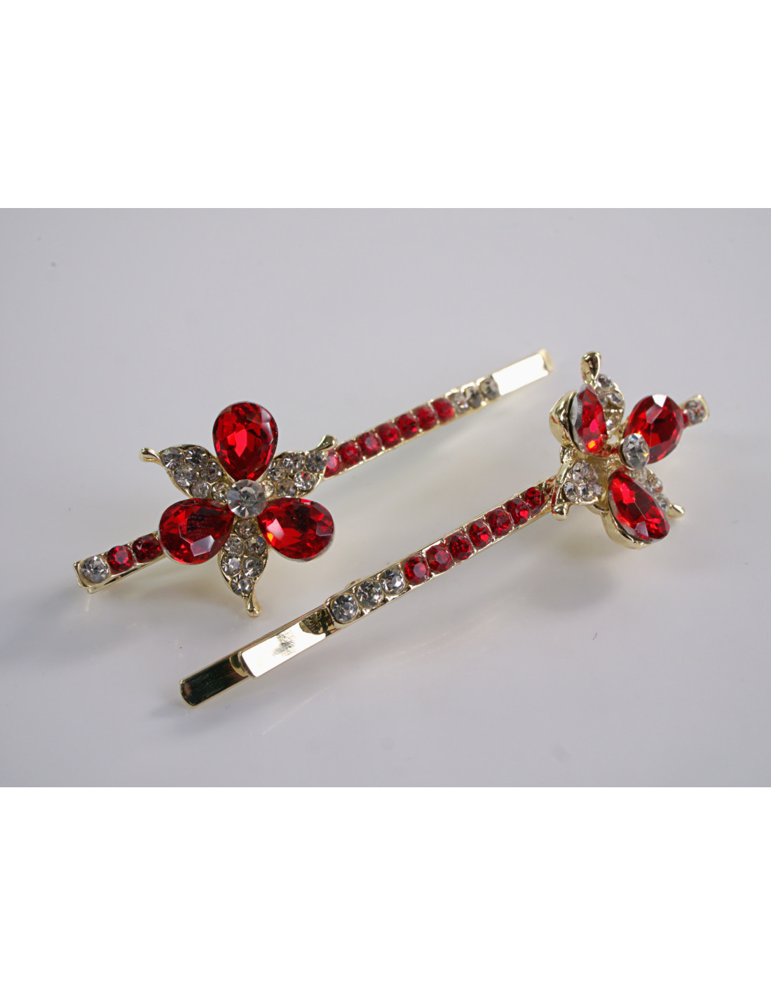 Wsuwka do włosów KWIATEK z kryształkami 2 szt. Lolita Akcesoria CZERWONY