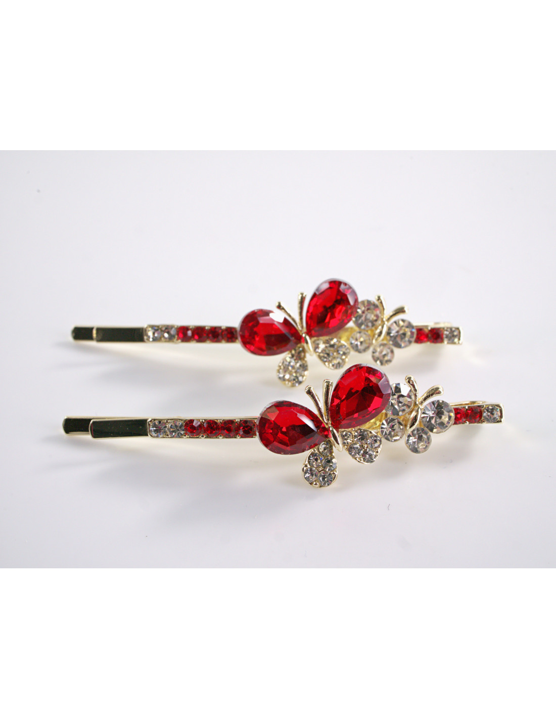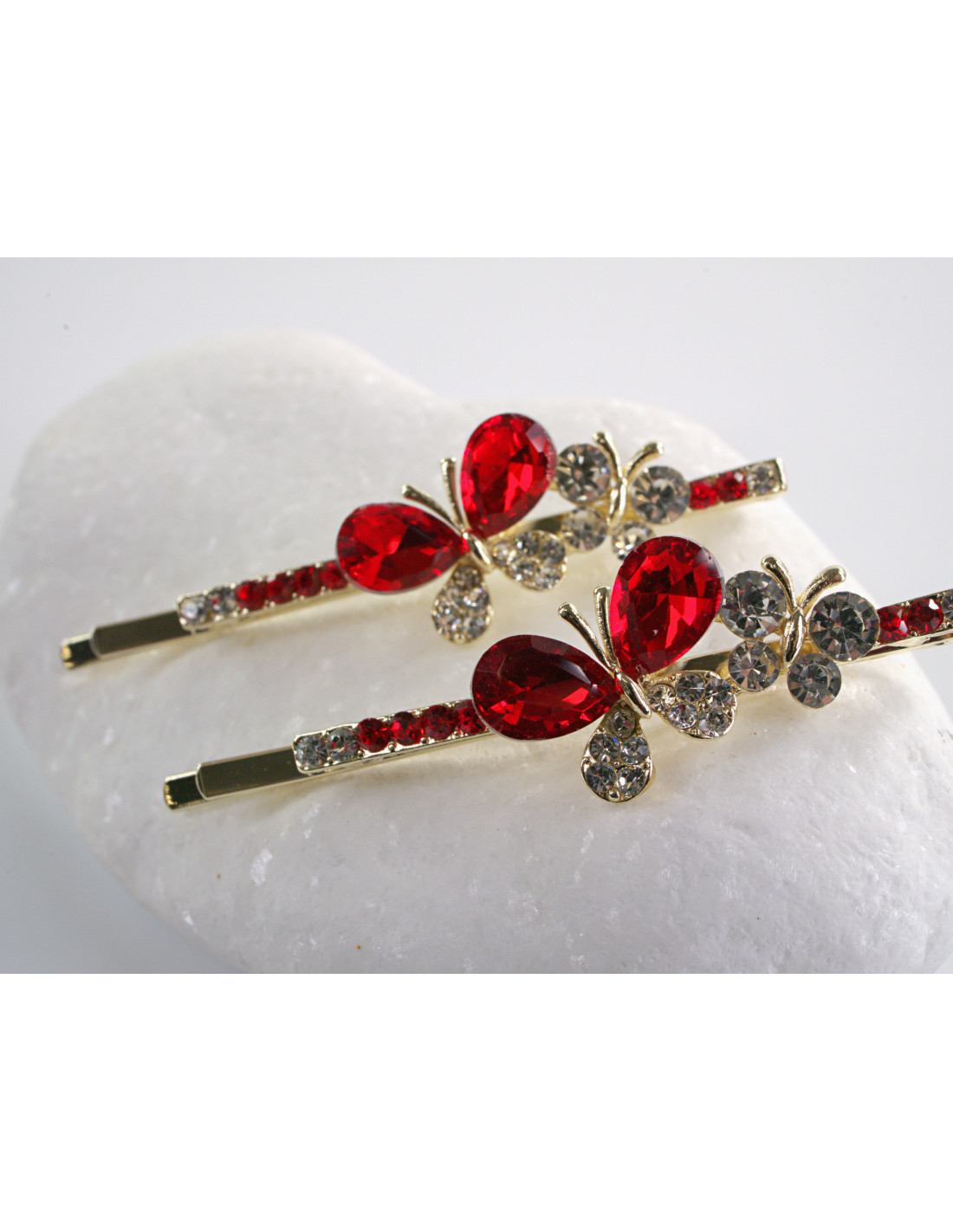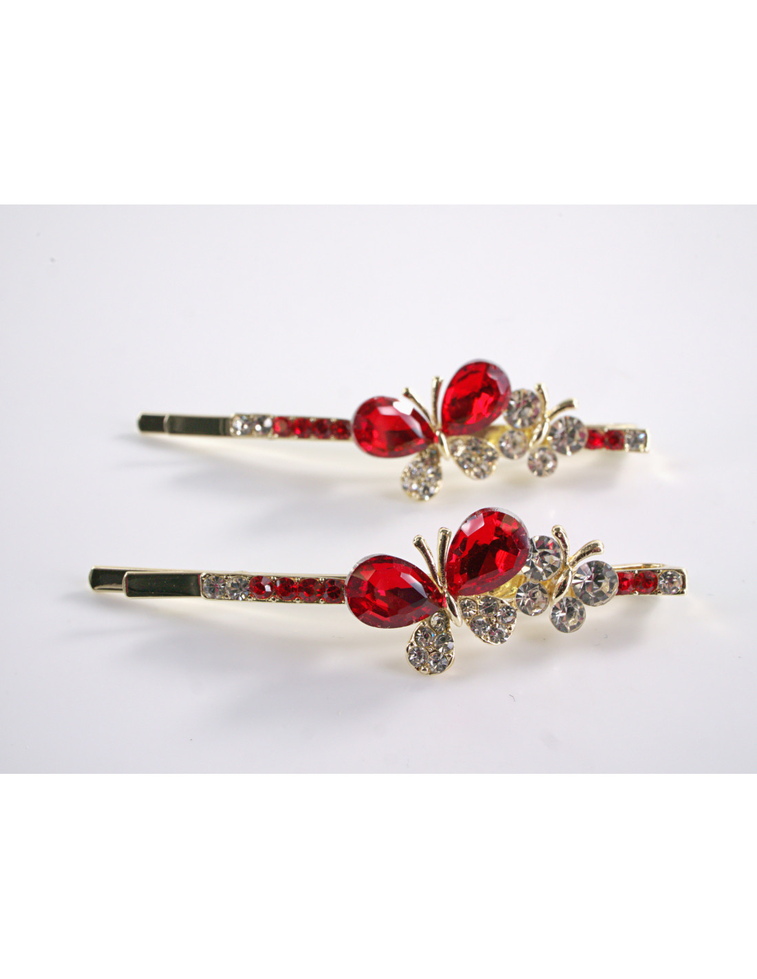 Wsuwka do włosów MOTYLEK z kryształkami 2 szt. Lolita Akcesoria CZERWONY