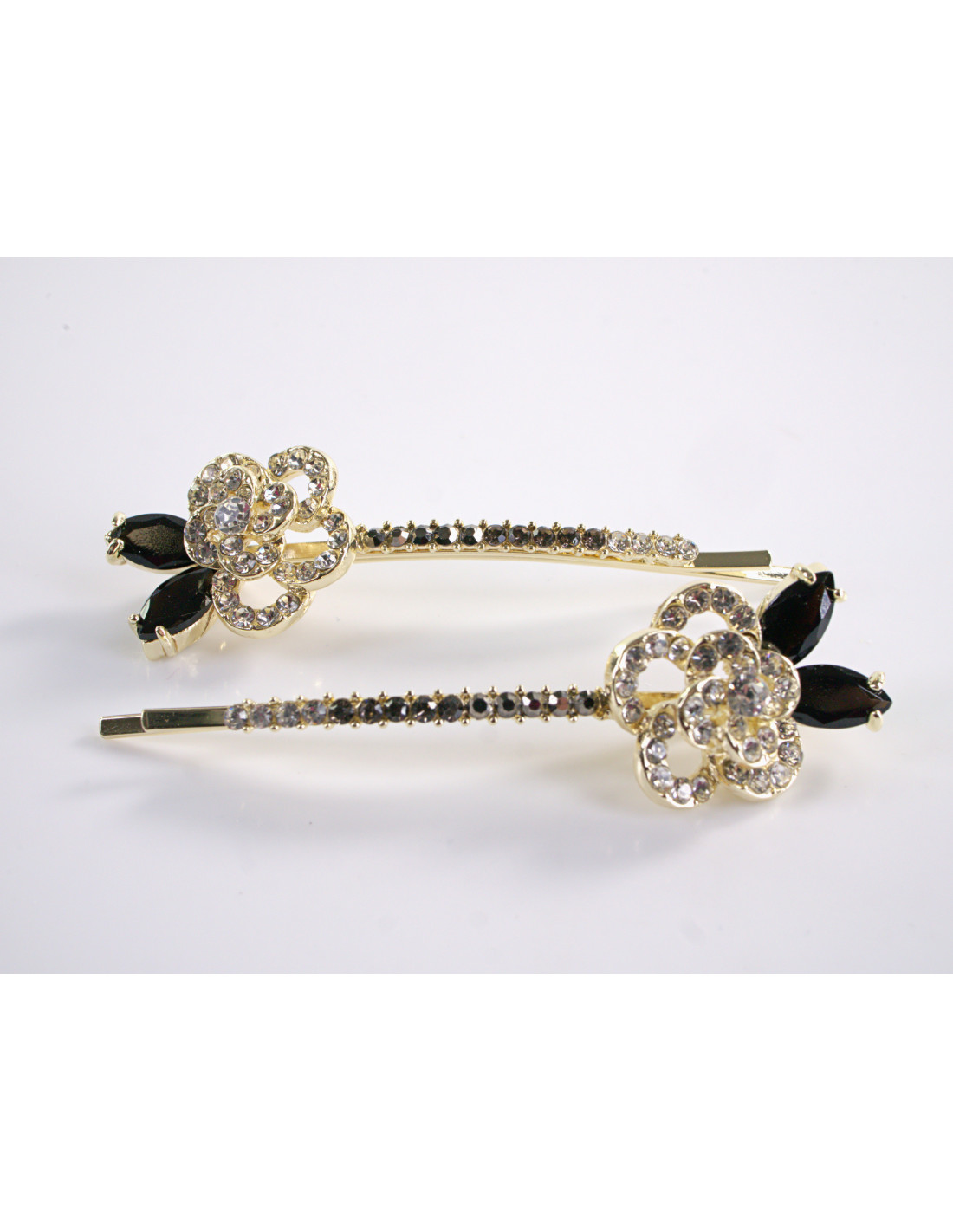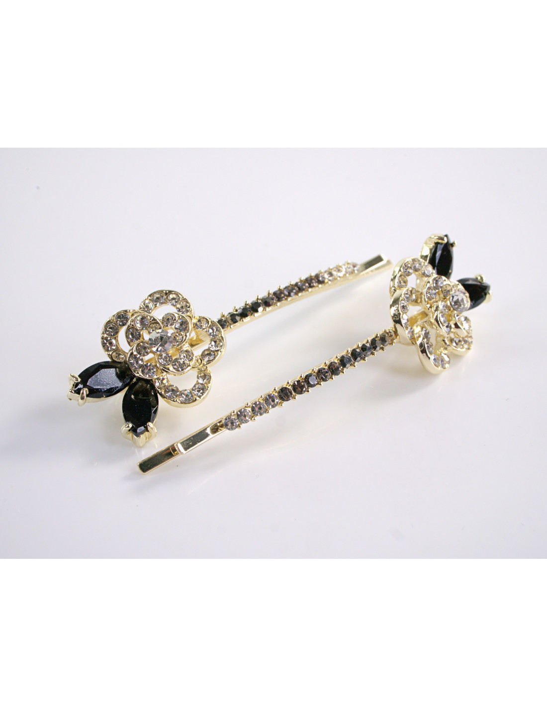 Wsuwka do włosów RÓŻYCZKI z kryształkami 2 szt. Lolita Akcesoria CZARNY