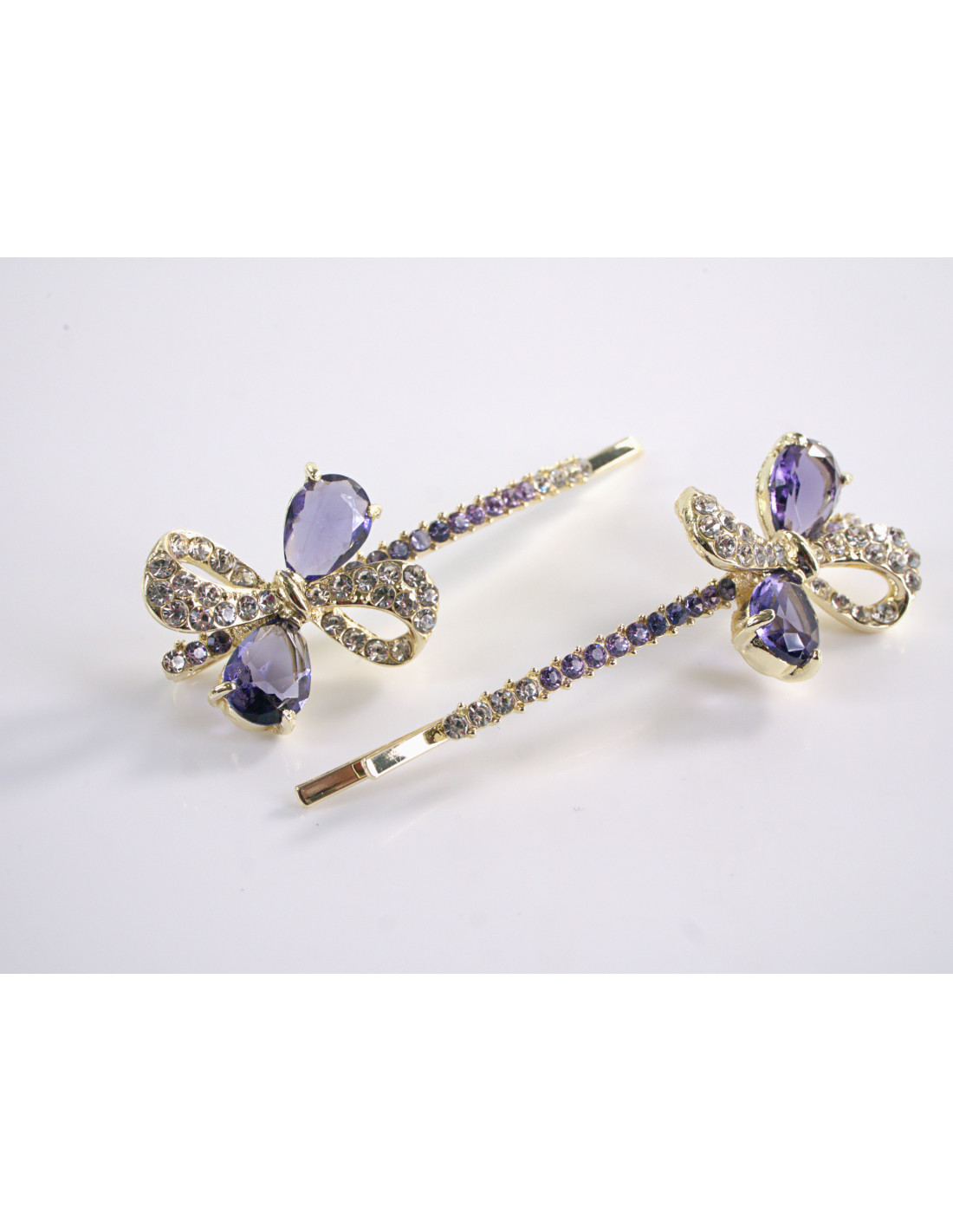 Wsuwka do włosów KOKARDKI z kryształkami 2 szt. Lolita Akcesoria FIOLETOWY