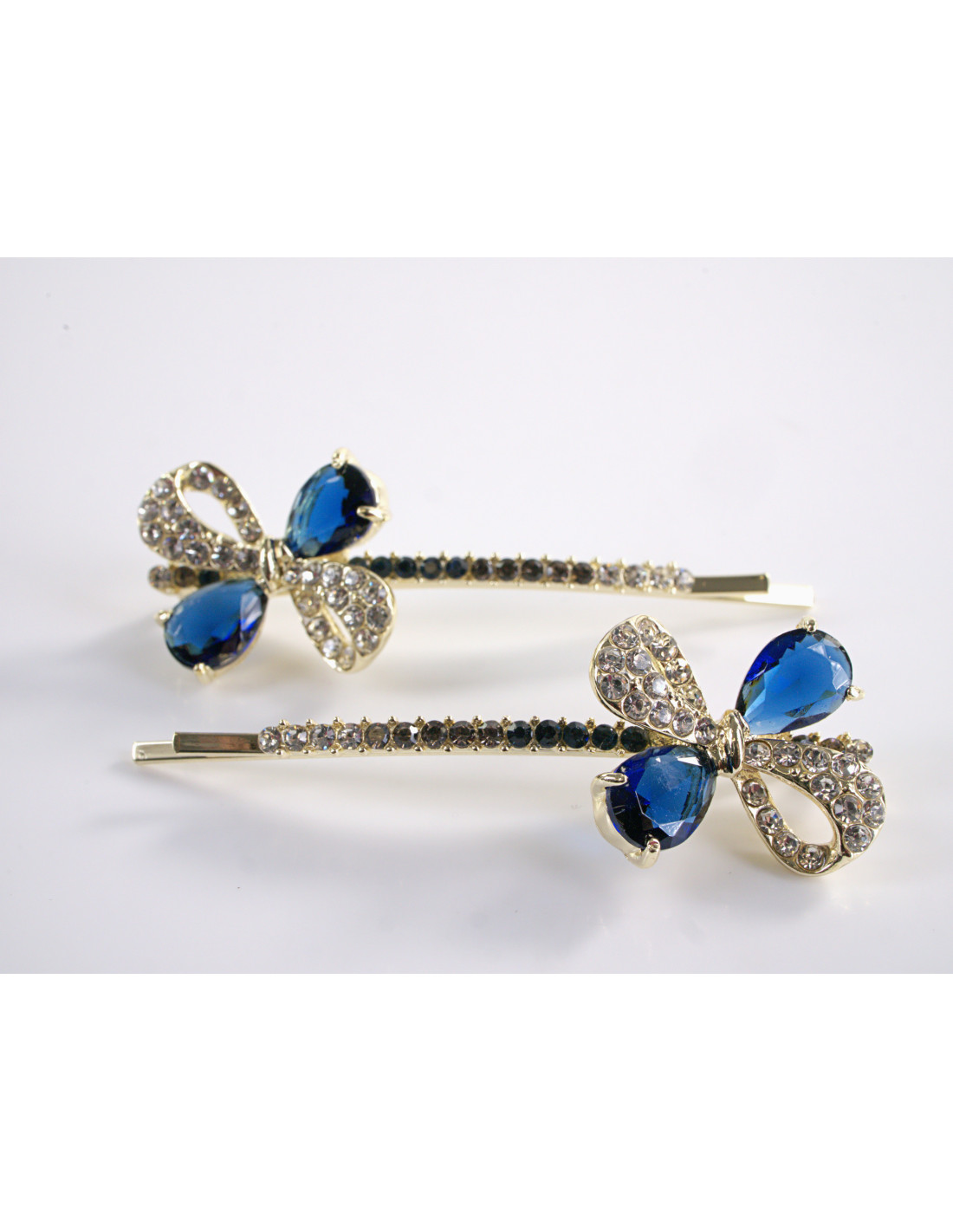 Wsuwka do włosów KOKARDKI z kryształkami 2 szt. Lolita Akcesoria NIEBIESKI