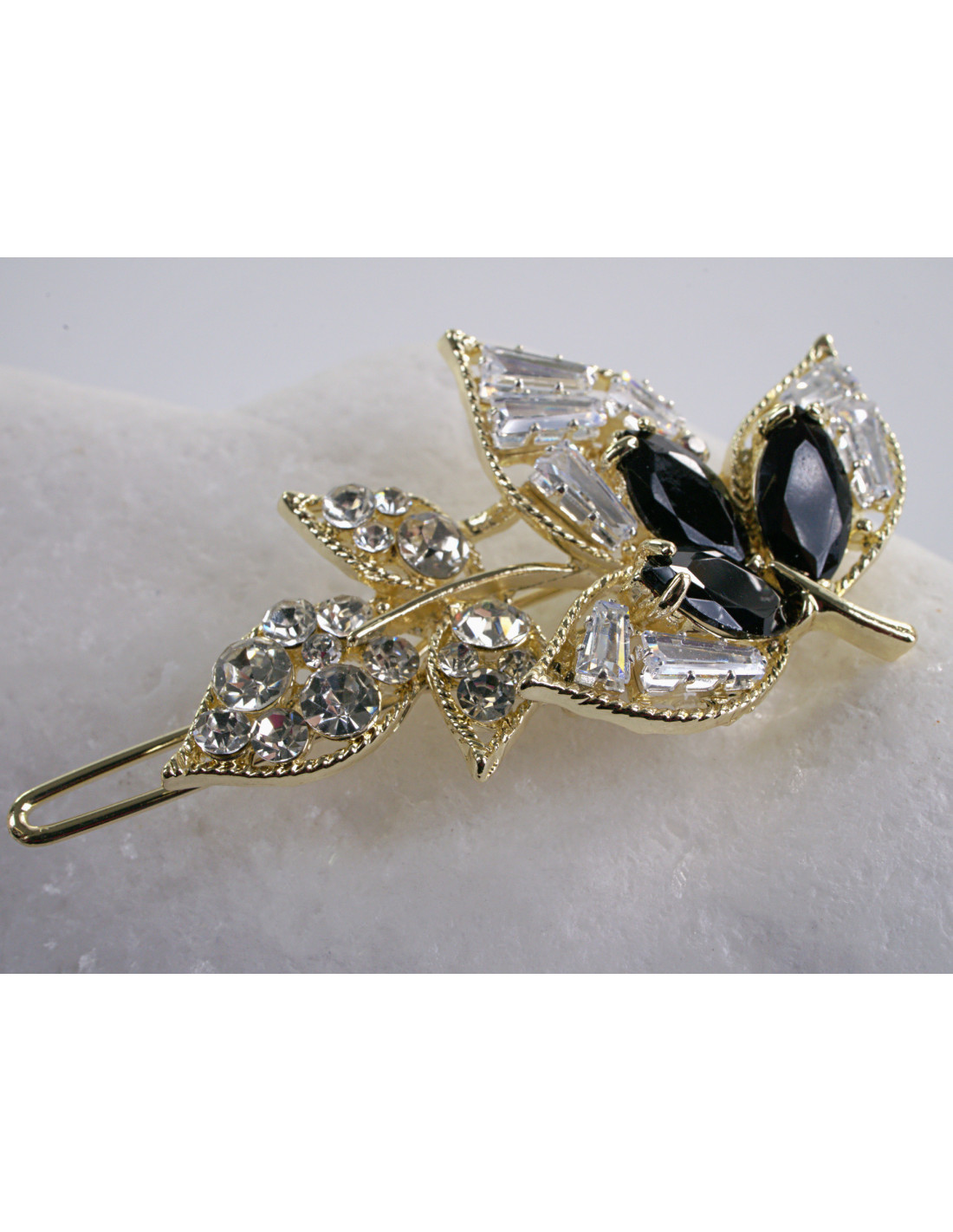 SPINKA do włosów LIŚĆ LISTEK Z KRYSZTAŁKAMI Lolita Akcesoria CZARNY