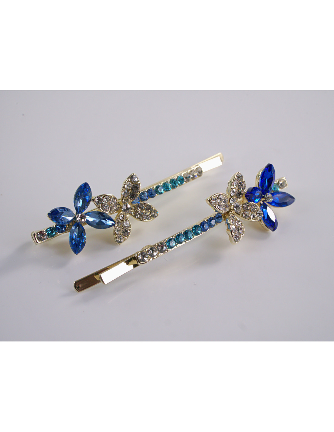 Wsuwka do włosów KWIATKI z kryształkami 2 szt. Lolita Akcesoria NIEBIESKI