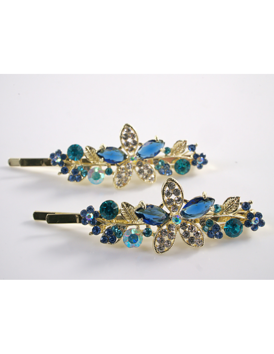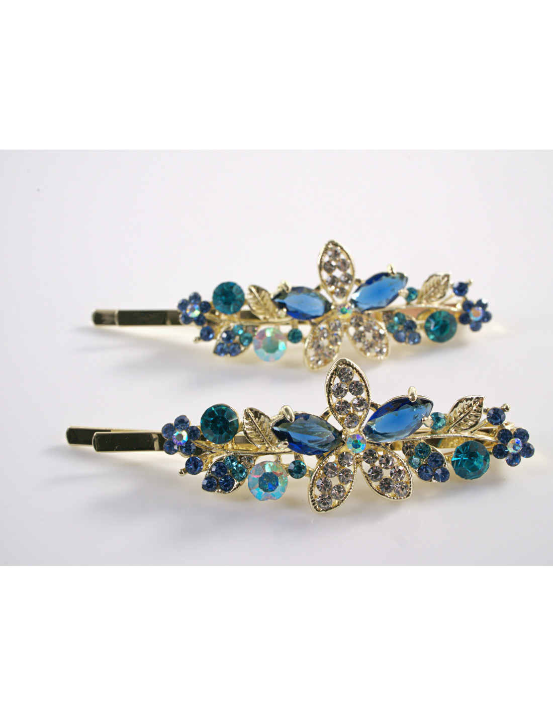 Wsuwka do włosów KWIATKI z kryształkami 2 szt. Lolita Akcesoria NIEBIESKI