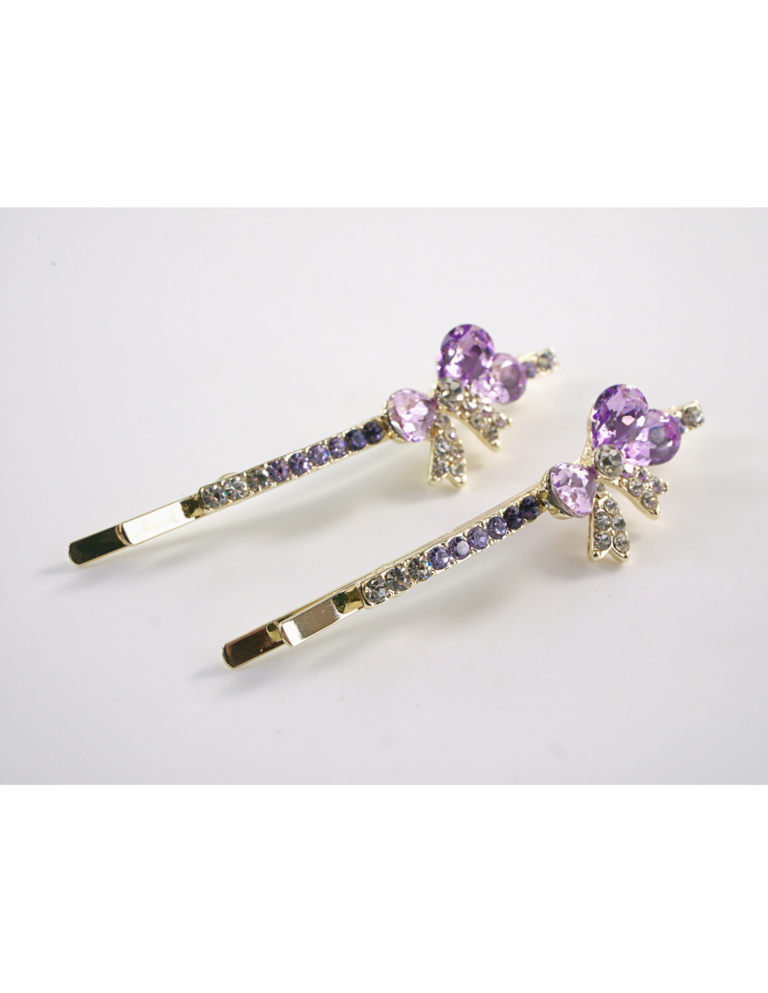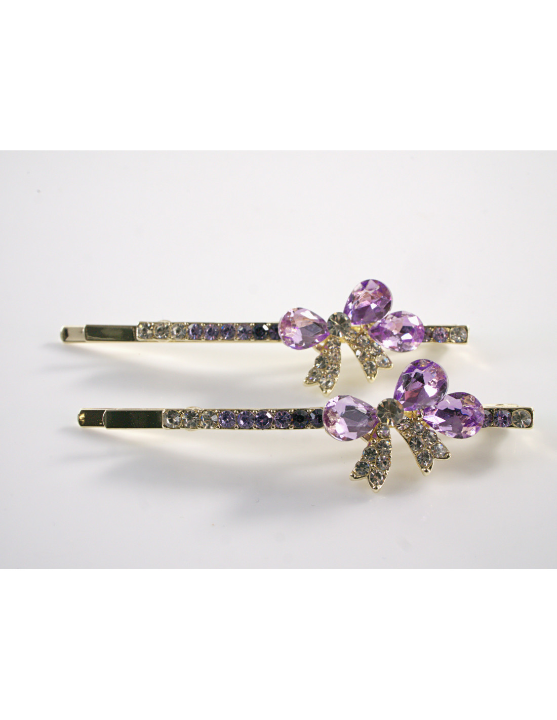 Wsuwka do włosów KOKARDKI z kryształkami 2 szt Lolita Akcesoria FIOLETOWY