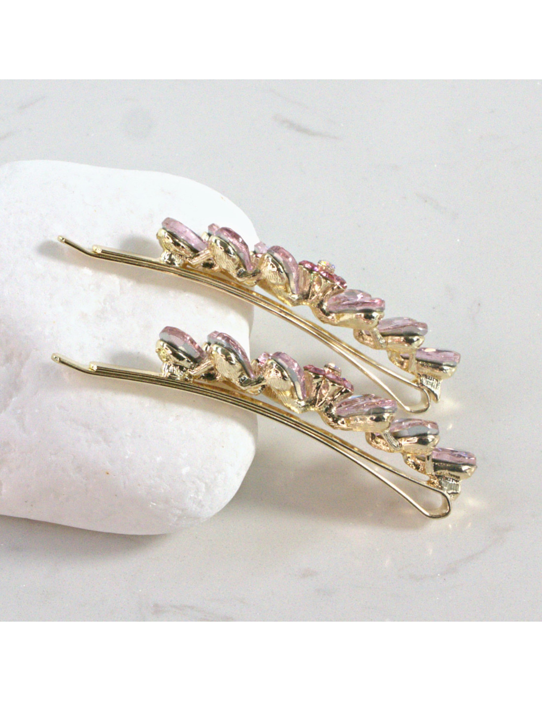 Wsuwka do włosów kwiatek z listkami RÓŻOWY 2 szt. Lolita Akcesoria